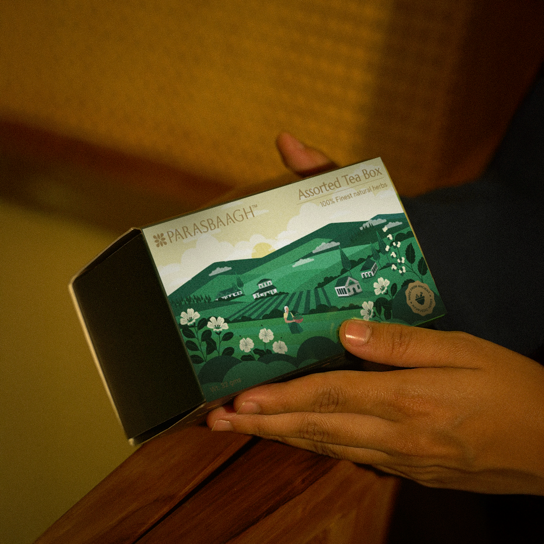 Parasbaagh Assorted Tea Box – A curated collection of all eight Parasbaagh wellness teas, beautifully packed to take you on a journey of health and tradition. Each blend is handcrafted in small batches with pure, natural ingredients — from calming Stress Relief Tea to energizing Immunity Booster and nourishing Skin Glow Tea. Perfect for discovering your favorites or gifting wellness to your loved ones, this box is a celebration of mindful living, one cup at a time.
